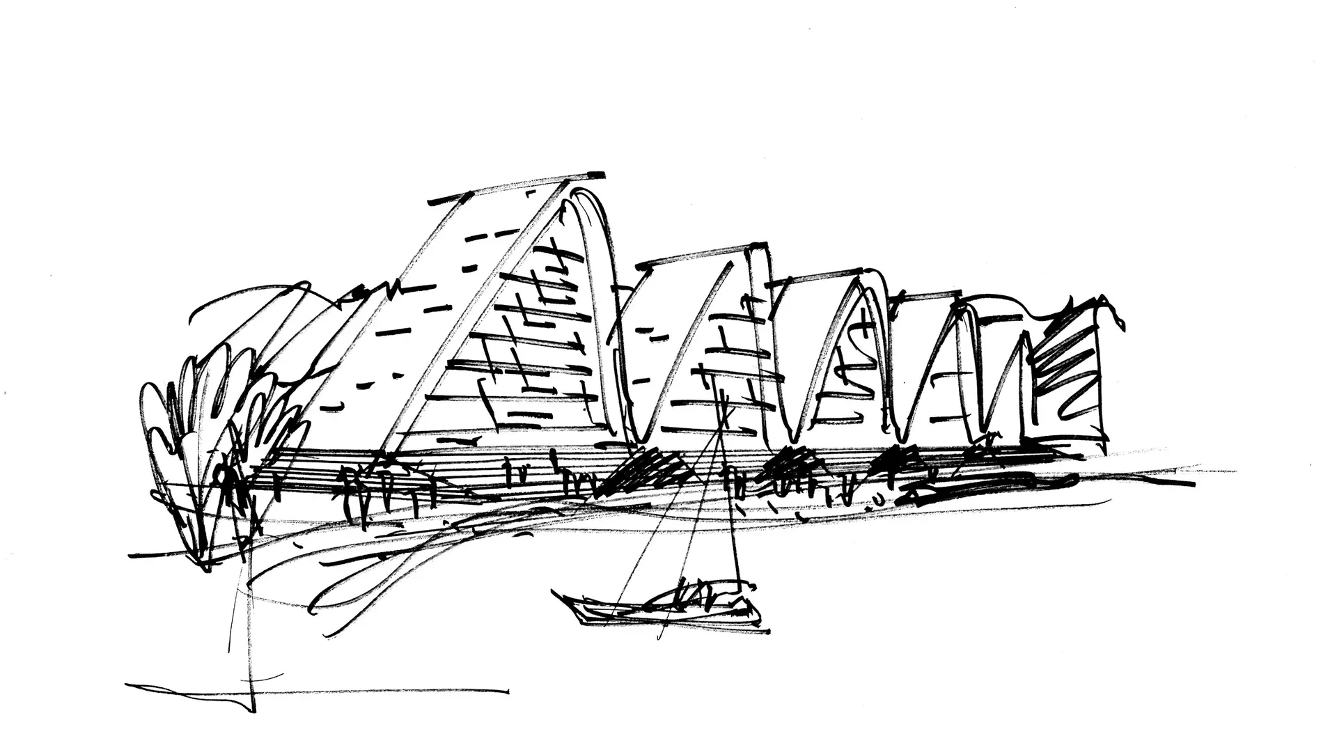AE Interests: Two major theatres with a mesh of triangular sunshades for a facade. Facade filters natural light throughout the day. Fenestration offers a dramatic contrast of light. Complex form is supported by a double-layered space frame. Utilizes Y-shaped columns to collect rainwater.