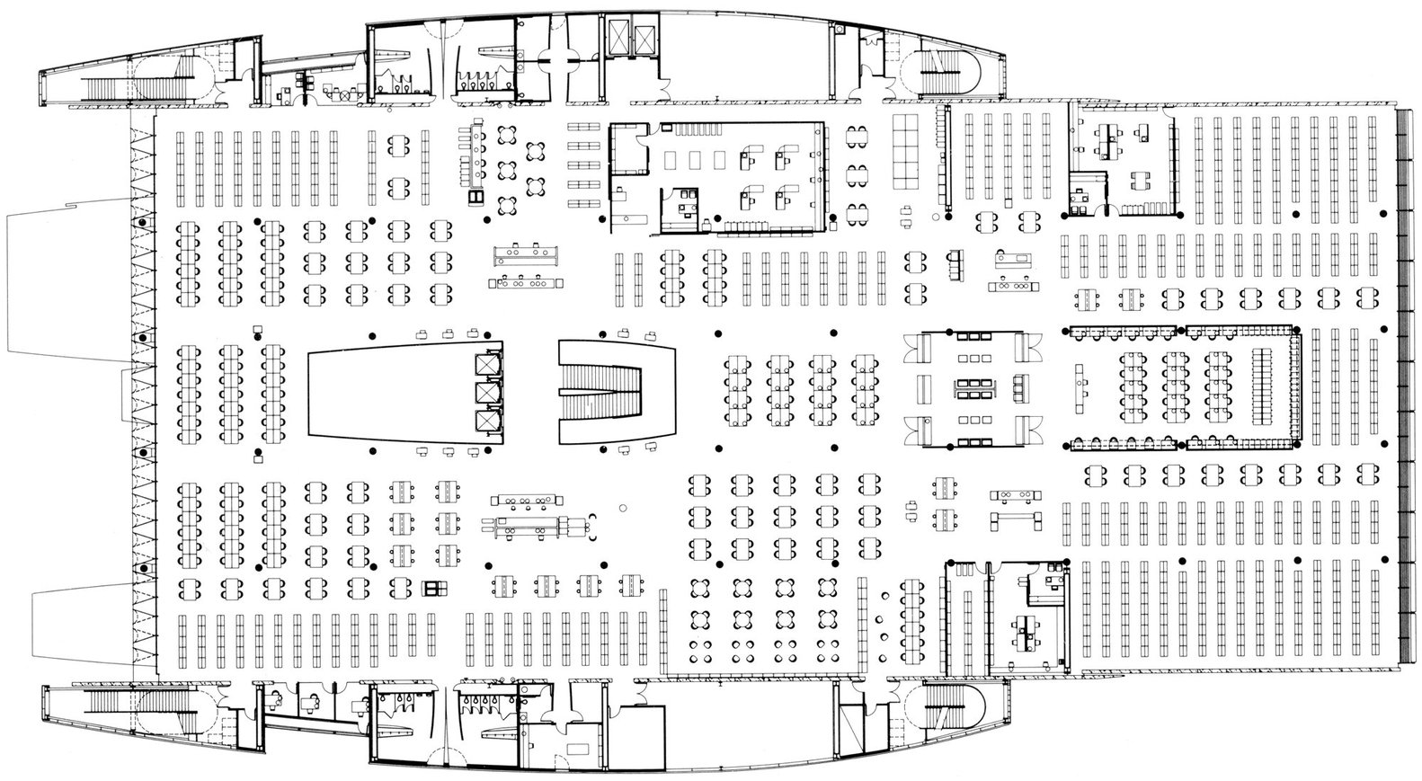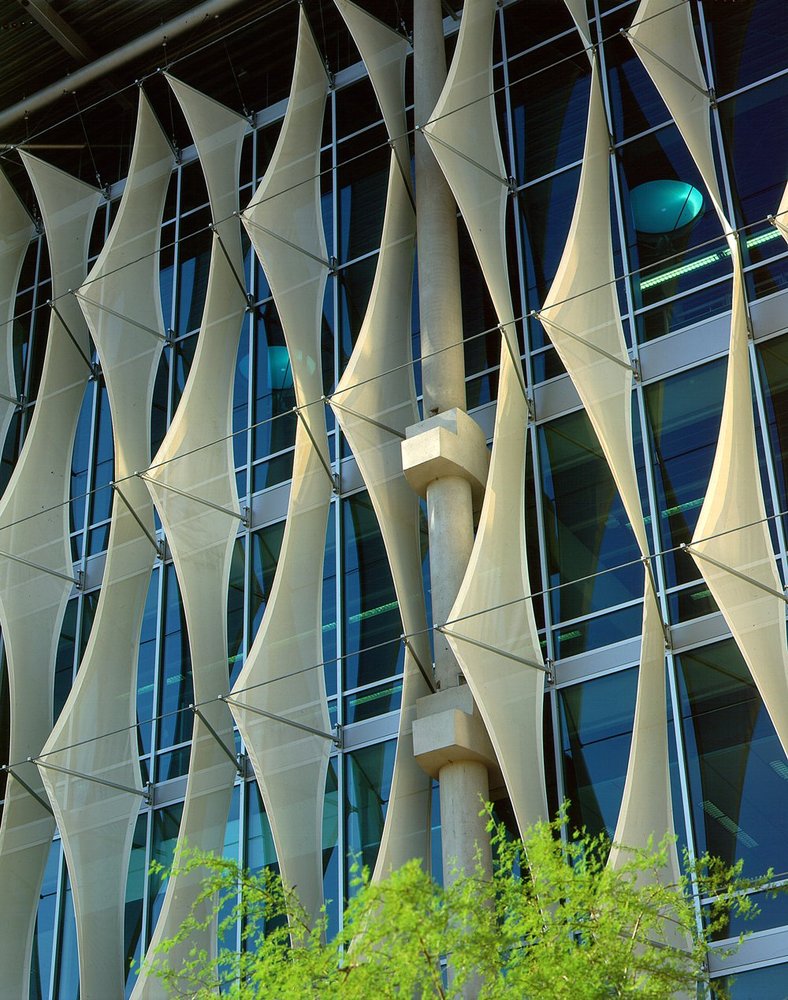 AE Interests: tensegrity roof structure, motorized louvers, open reading room, glass and steel elevator, outrageous bathrooms