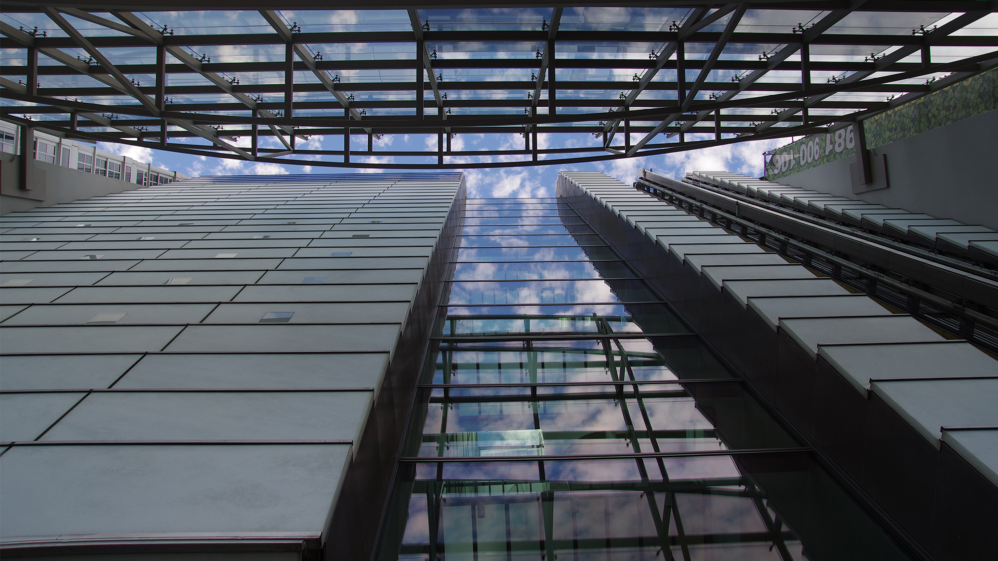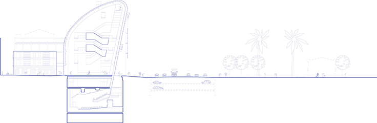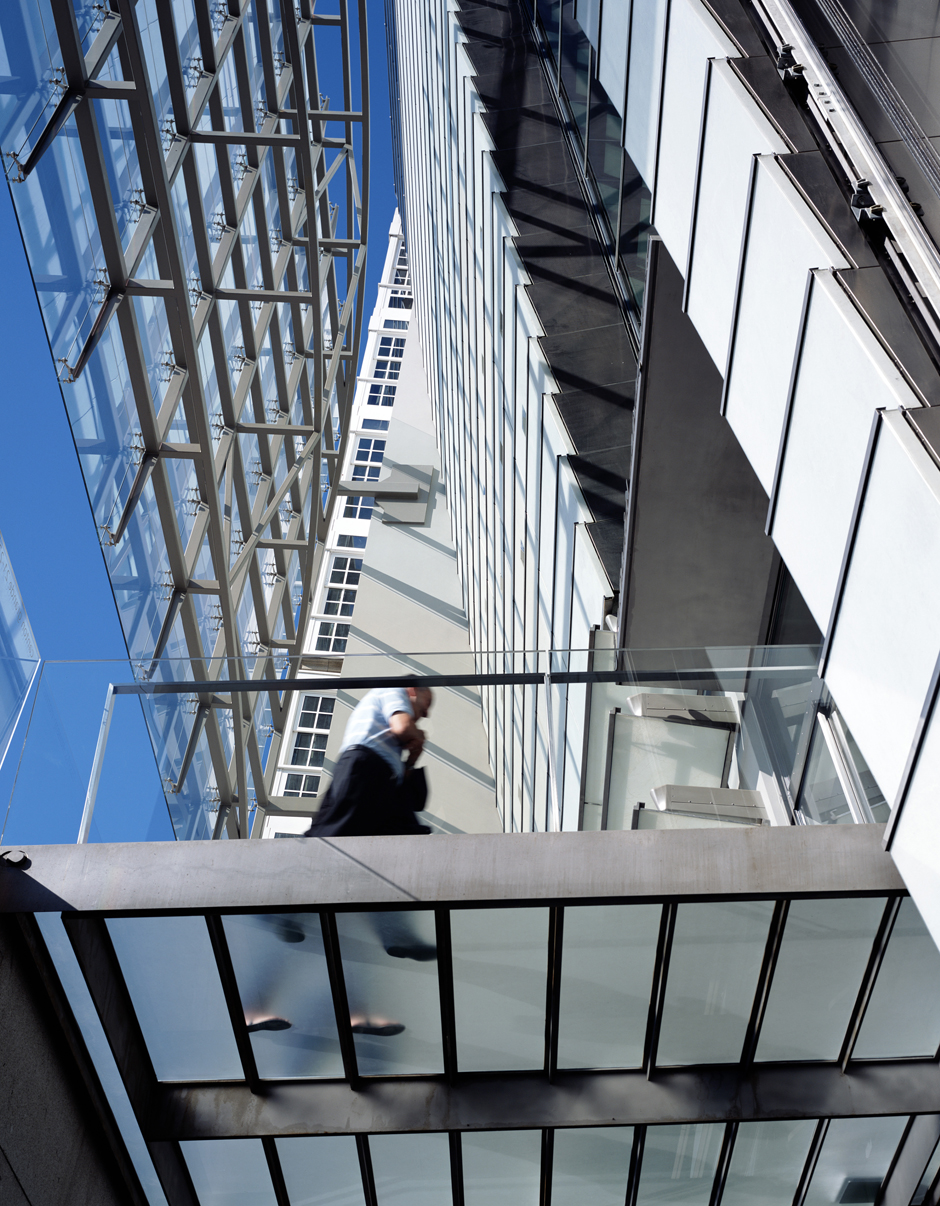 AE interests: responds sensitively to site, glass paneling, marble interlayer, lighting