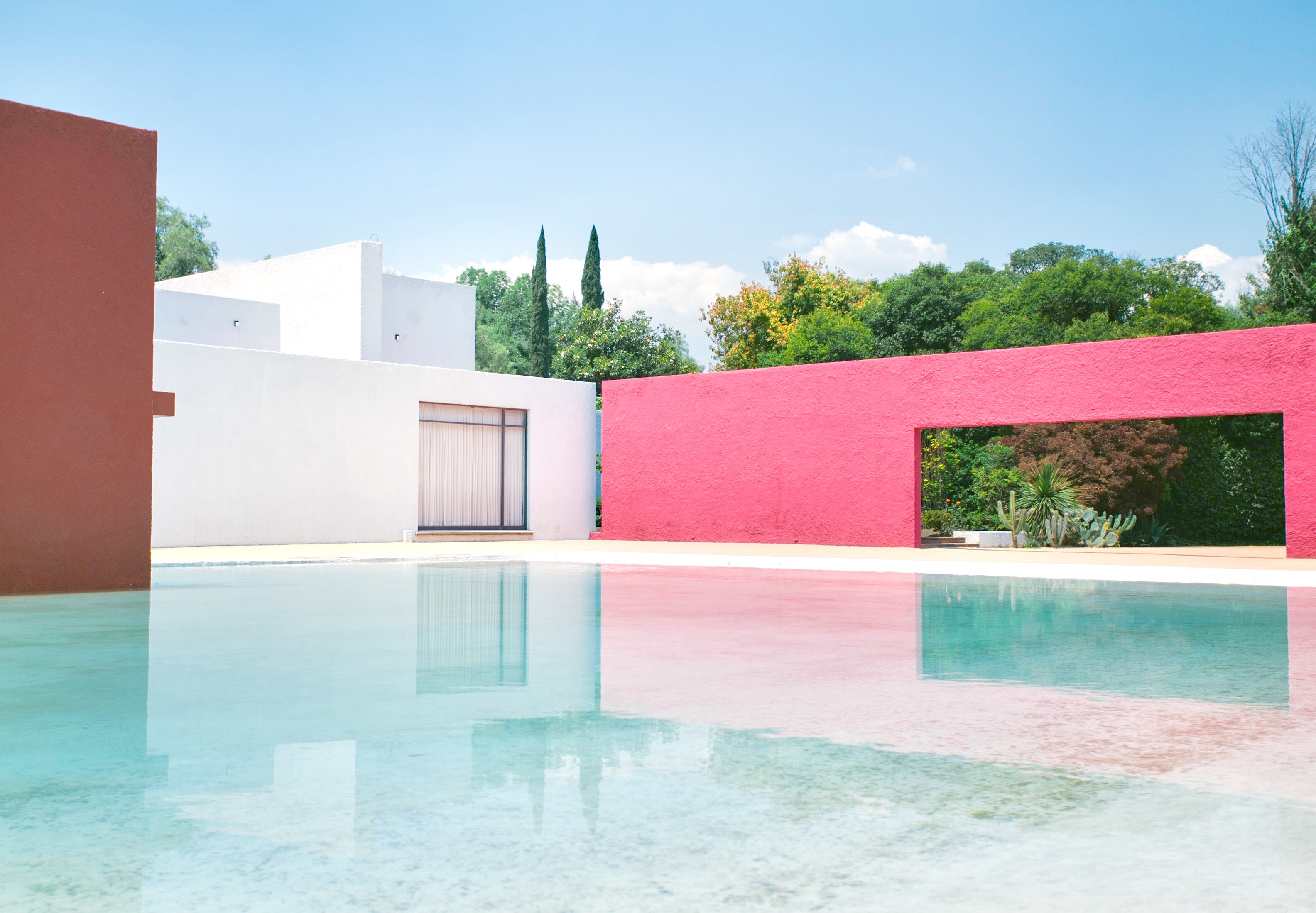 AE Interests: house/stable, pool of water with waterfall, nature immersion, color, concrete texture