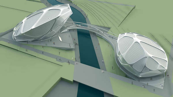AE Interests: Steel Walking Bridge, Geometric Forms, Mesh Skin