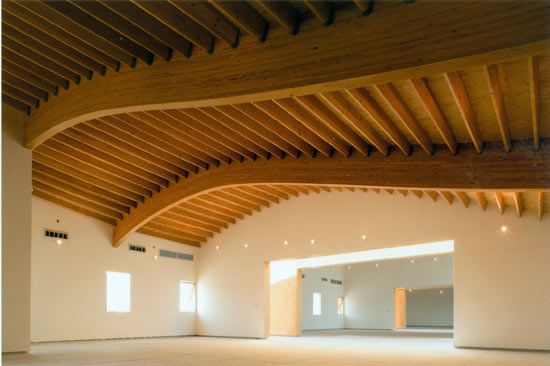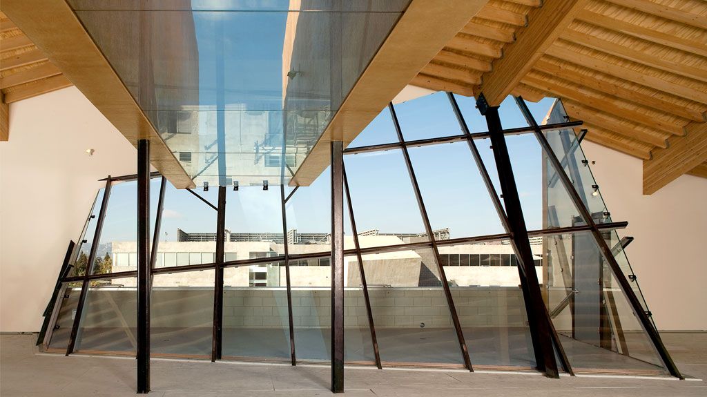 AE Interests: structure, site, sloped glass, glulam structural beam