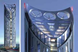 AE Interests: 3 large wind-turbines at top of tower, alternative energy, sustainability.