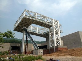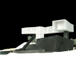 AEInterest: Galleries composed primarily of cantilevered walkways. Full story box truss above a rammed earth base.
