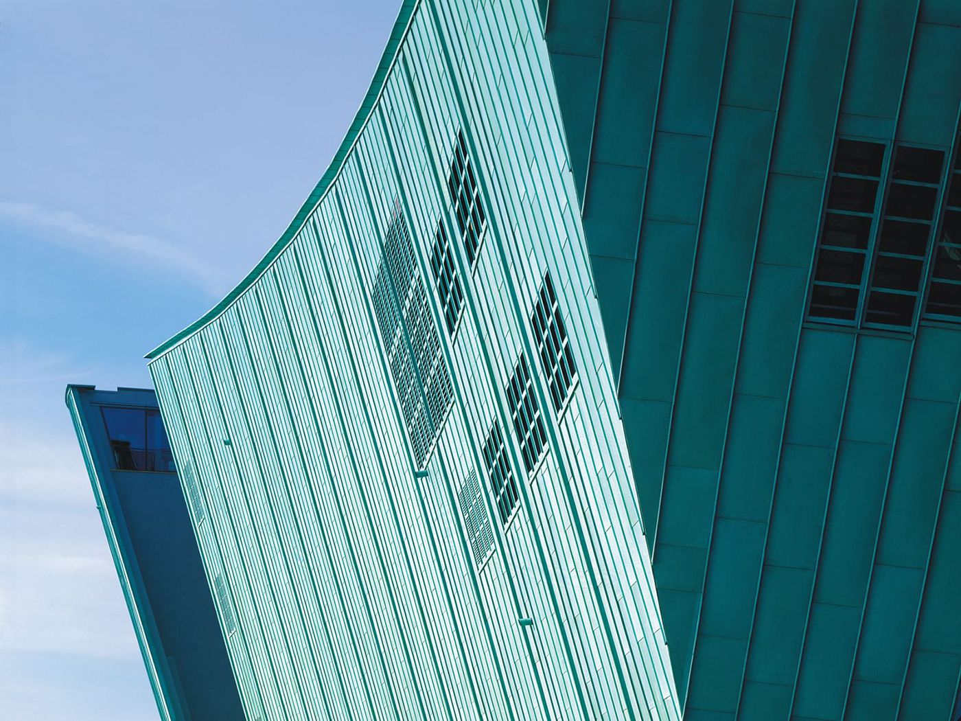 AE Interests: Pre-oxidized copper clad facades, Use of roof as a public plaza, conforms to surrounding water