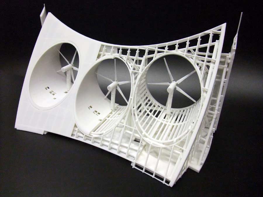 AE Interest: Three large turbines (power building’s lighting), aerodynamic form maximizes the benefits of the wind power, triangular form.