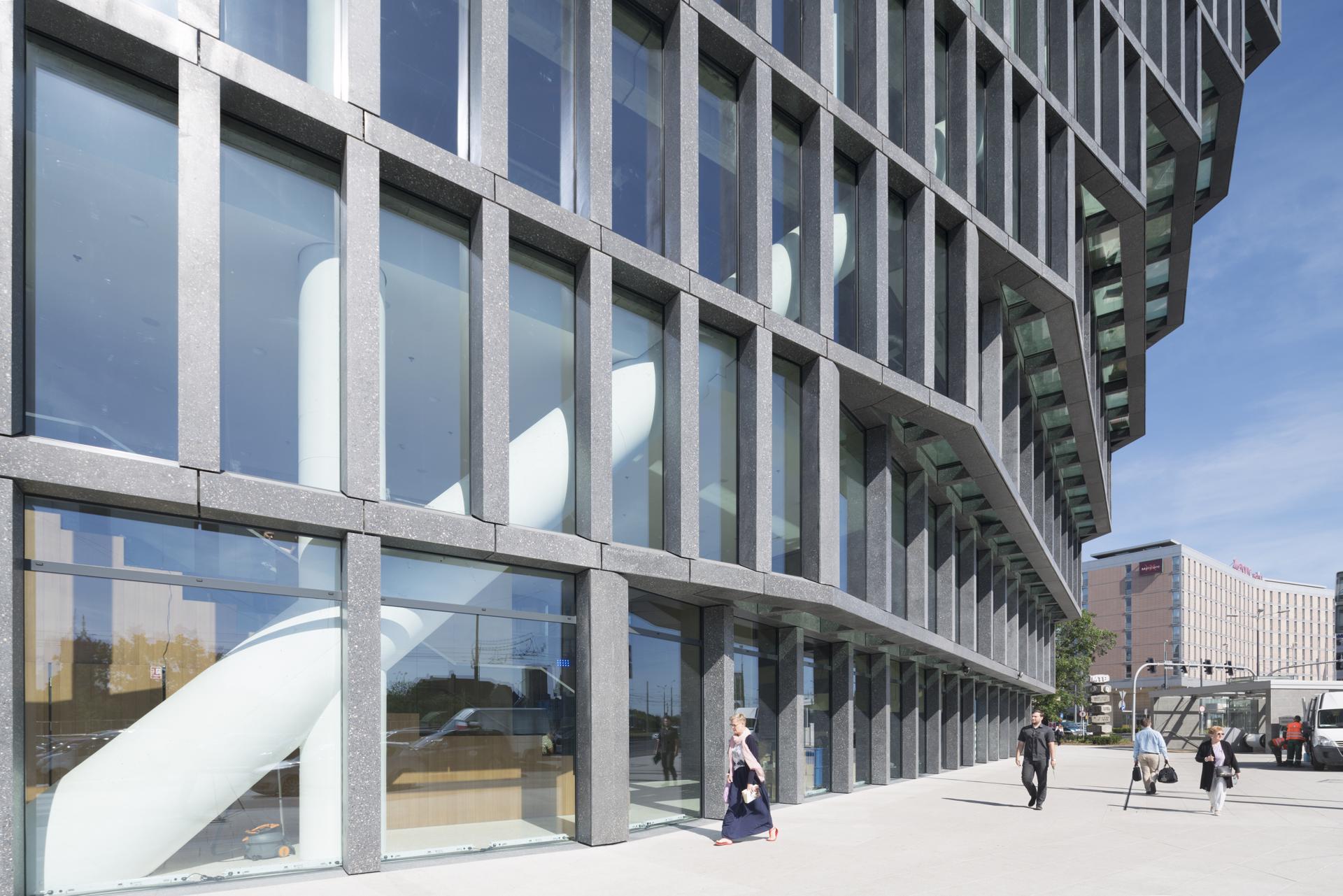 AE Interest: Multifunctional space, Scenic terraces, Form of the building changes completely with viewing angle, Glass facade.