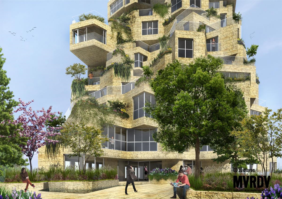 AE Interest: Organic facade. Multi use space. Modern housing solutions. Construction intended to revitalize the Zuidas area of Amsterdam.