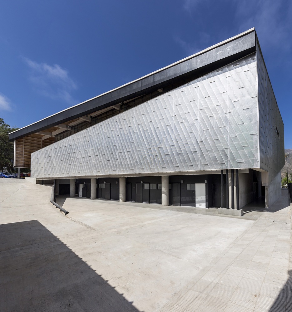 AE Interests: conceived from the site, controlled interior light, wood, metal, and concrete, faceted geometry, open to pedestrian sidewalks, incorporates originally closed lots