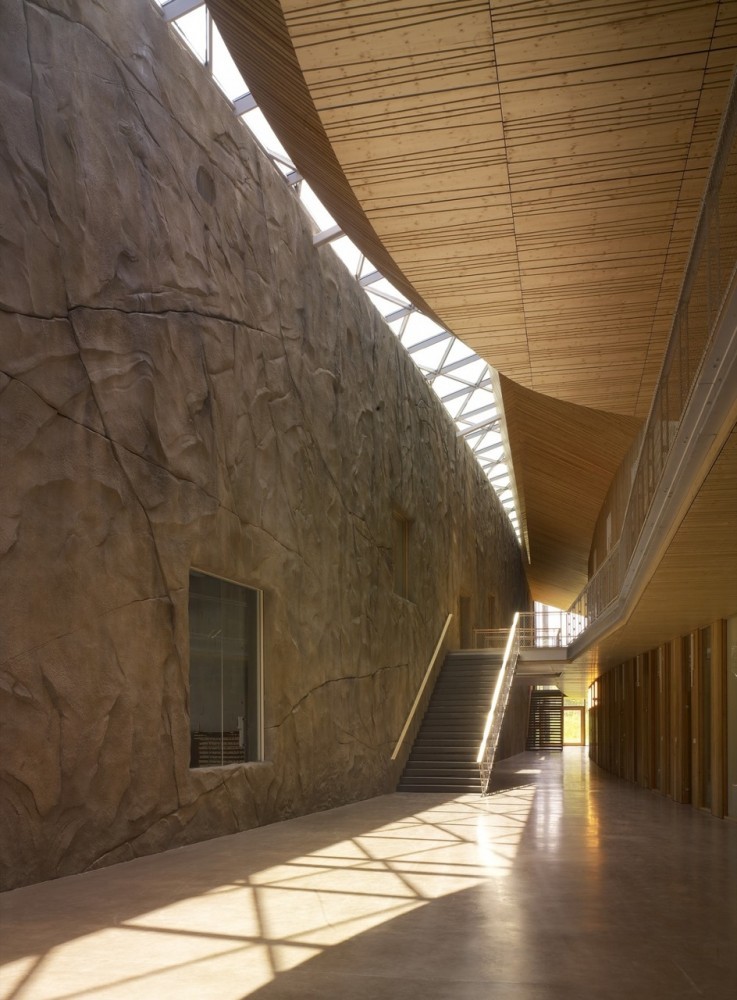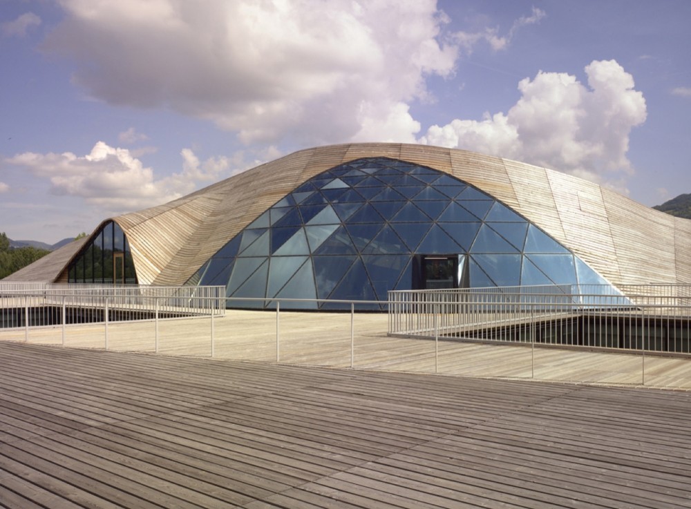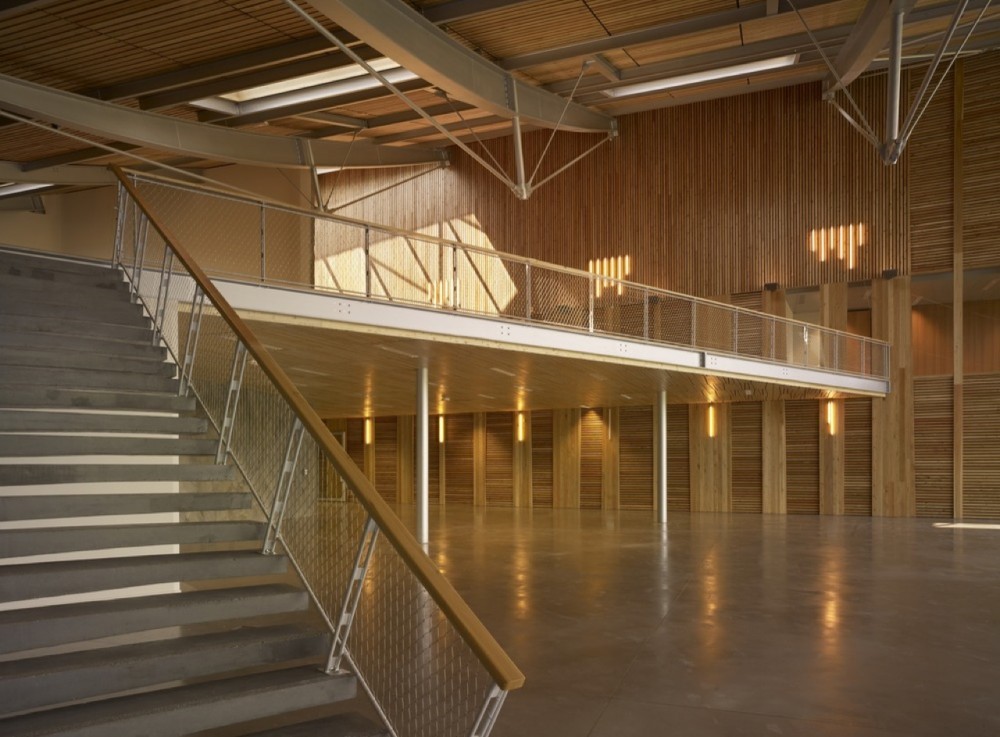 AE Interests: energy-saving, steel structure, wood and glass external envelope, timber over-roof, natural larch, natural ventilation, automatic window openings, internal social communication, re-injection heating system