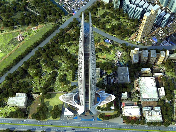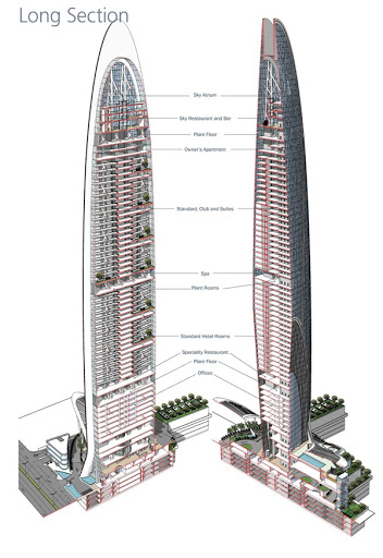 AE interests: Canopies that support solar thermal collectors will be able to provide energy to heat water in the hotel. The two sides of the hotel are clasped together, resembling hands greeting the city. Facade shows Mehndi patterns.