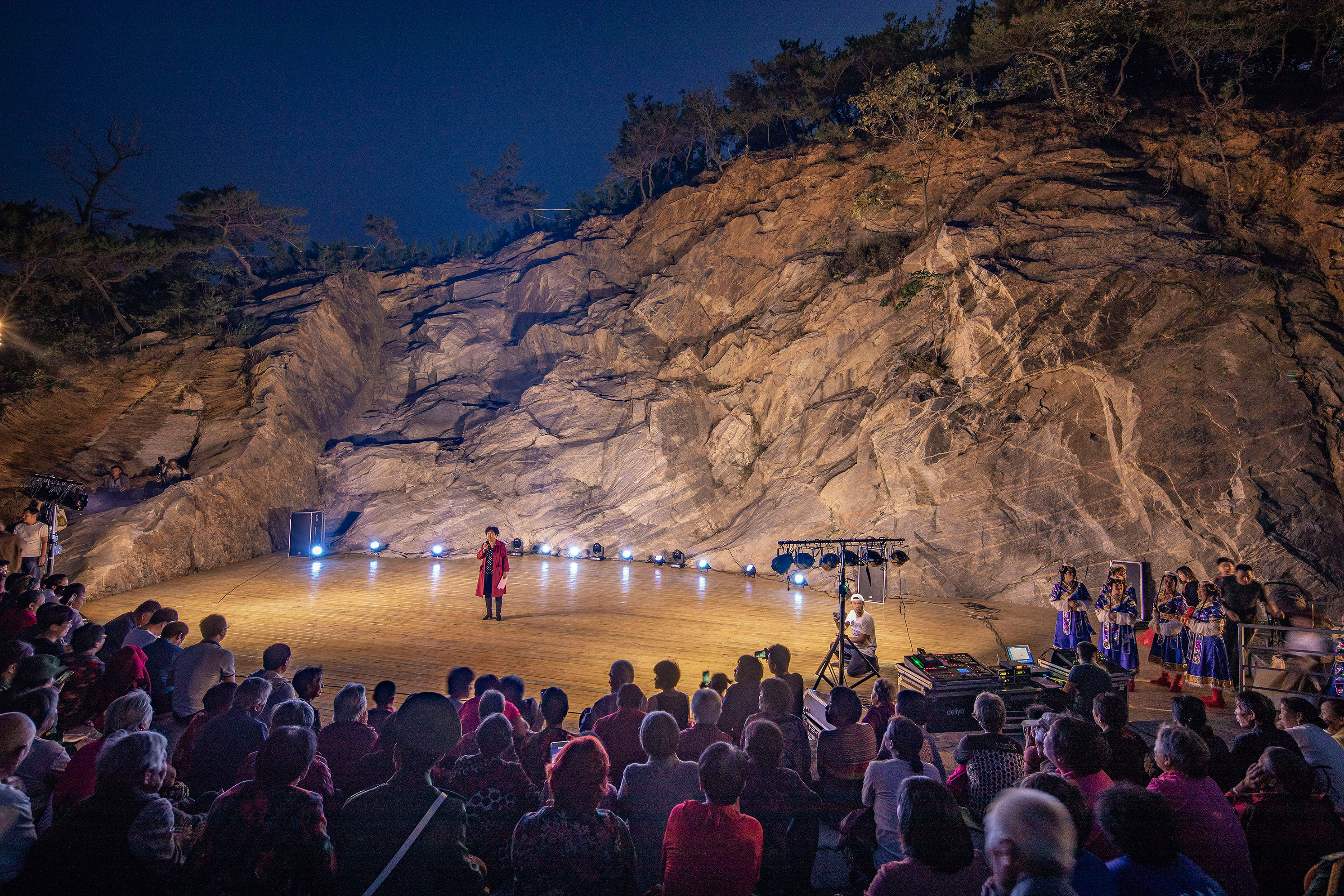 stone pit, open air theatre, community space, nature inspired architecture, preserved cliff, French windows, stone walls, 280 m^2 lot, environmental protection, public space, logical intertextuality