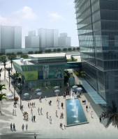 Starts with a relatively small base and swells out and up 58 floors, a 10,000 sq m public space on the roof of the podium, two separate towers on one podium, U-Bora Tower 1 contains mixed office use, U-Bora-Tower 2 contains residential