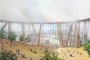 AE Interests: 390 meters tall, 31400 square meter site area, 63 floors, 100 room hotel on top floors, shops, restaurants, 2000 seat grand hall, bathhouse, semi-outdoor hill-like plaza, connected to Tokyo Station and Tokiwabashi Tower as part of urban development plan called ‘Tokyo Torch’, views of Tokyo and Mount Fuji, set to become Japan’s tallest building, best seismic resistance in Japan.