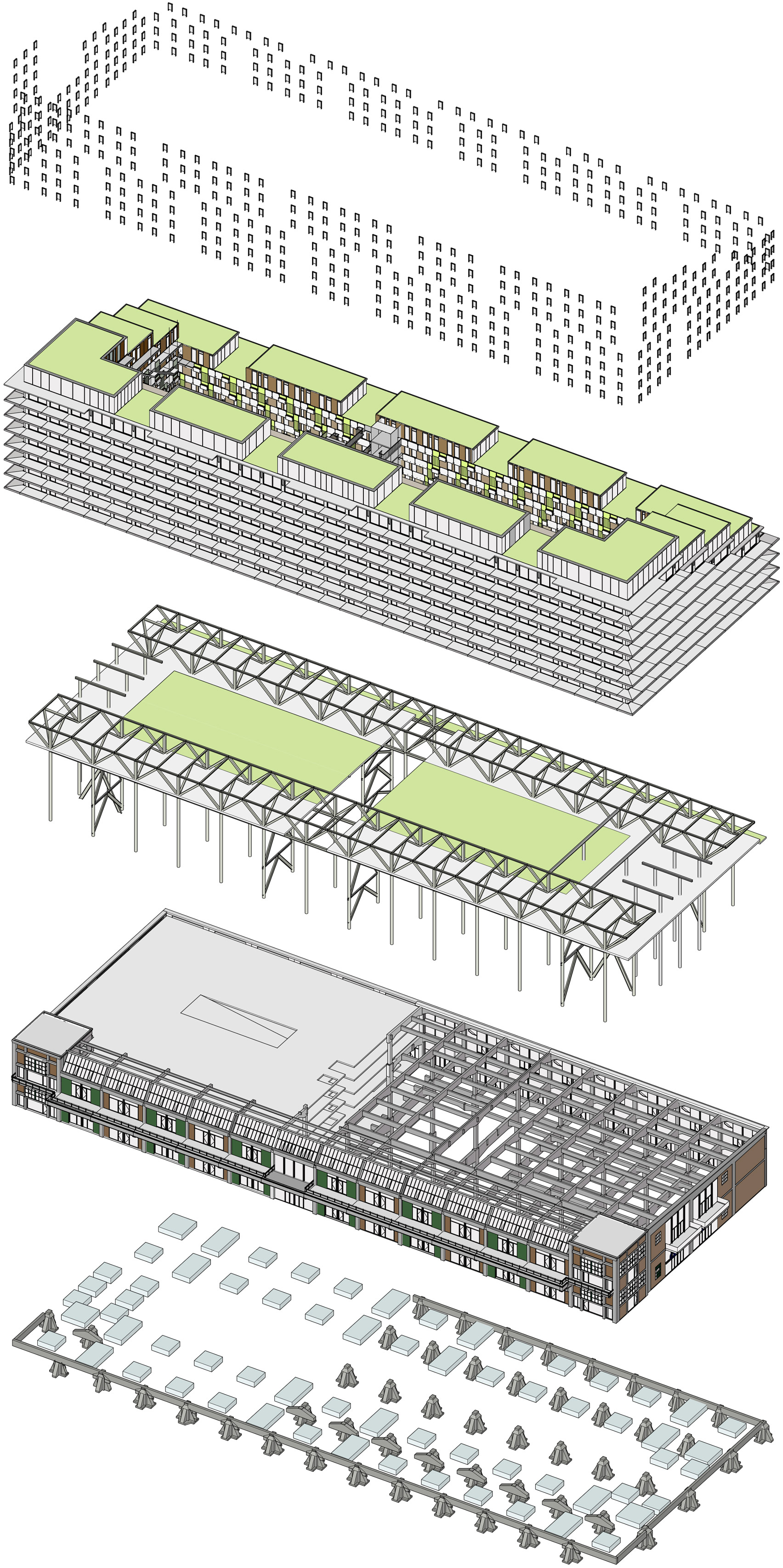 AE Interest: This structure was built on top of an old warehouse that was already in sight. As shown in the last image, there had to be steel structure installed right through the ware house in order for it to stand.