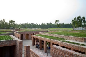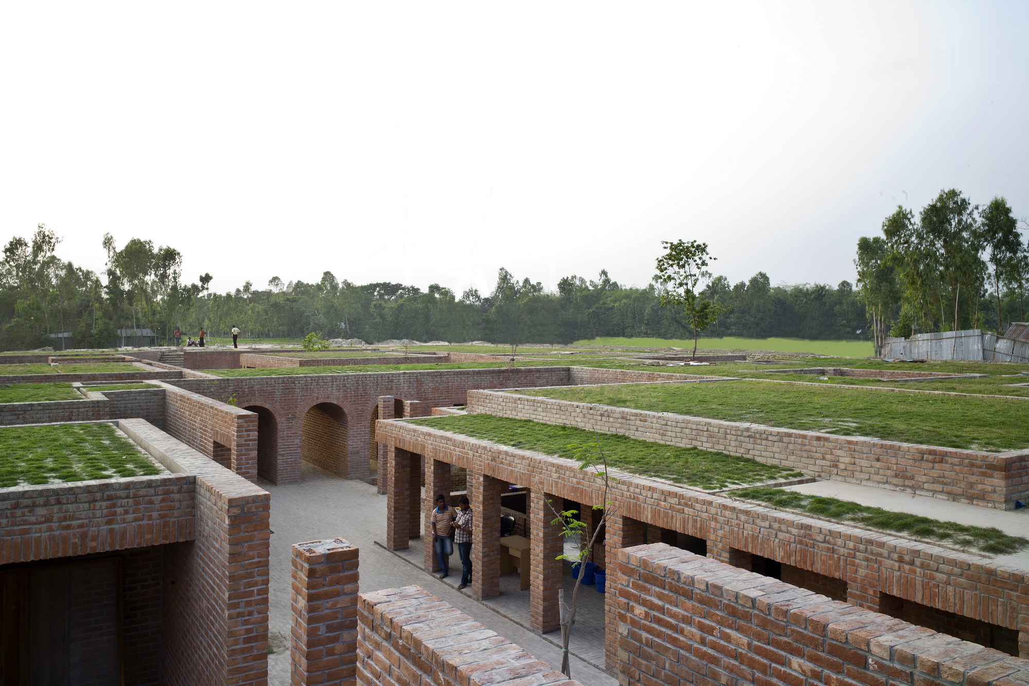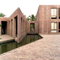 AE Interests: courtyards for natural ventilation, water harvesting systems, local handmade brick construction, green roofs, embankment with water run-off pumping system to combat local flooding, slots in brick facade for additional wind ventilation, canal and glass windows to reflect natural sunlight into rooms.