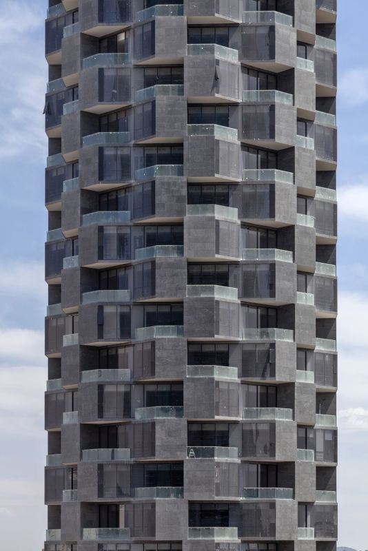 Multifamily mixed use residential building with a shopping center in the podium. 20,000 m² (215,278 ft²) of housing. Balcony views don’t cross, increasing tenant’s privacy. Leading project in sustainability, located in the most important area of development in the city. Facade made out of granite & glass, making the building look like a statue.