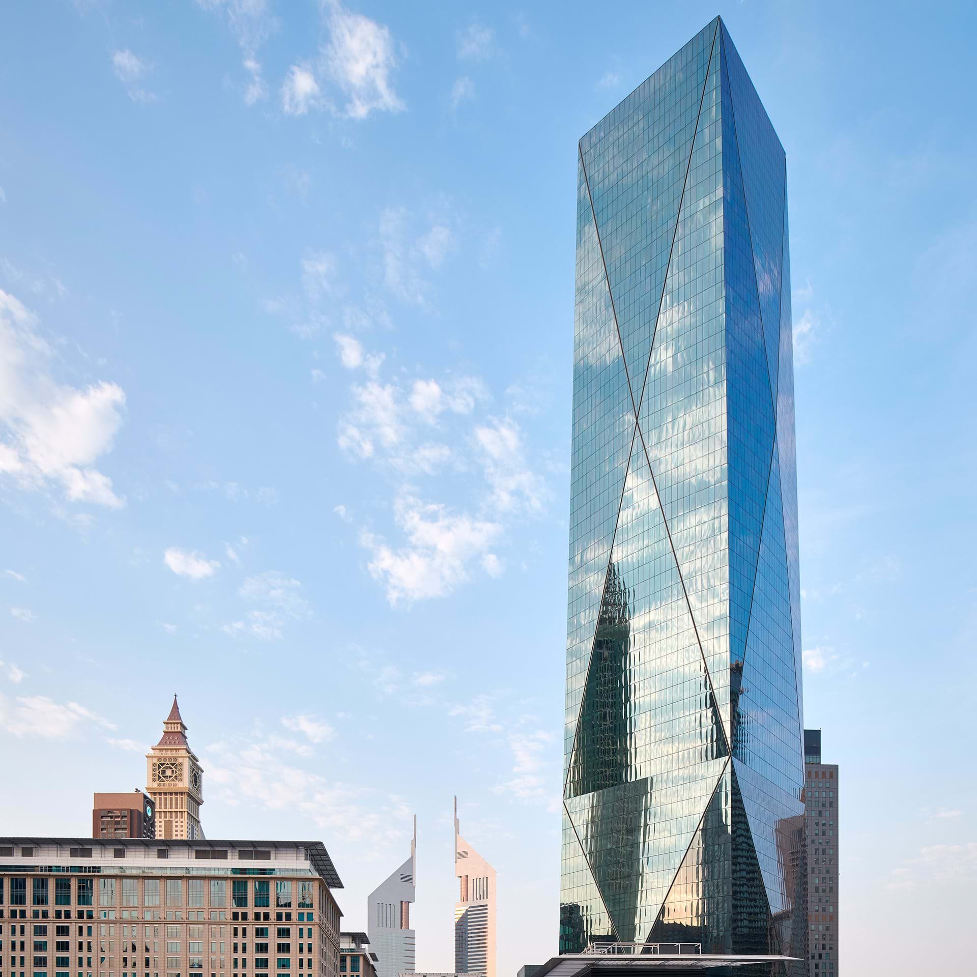 Reinforced concrete core, steel columns and floor spanning, LEED Gold BD+C, Leed Platinum Core and Shell, 279.1 m / 916 ft high, #37 tallest building in Dubai