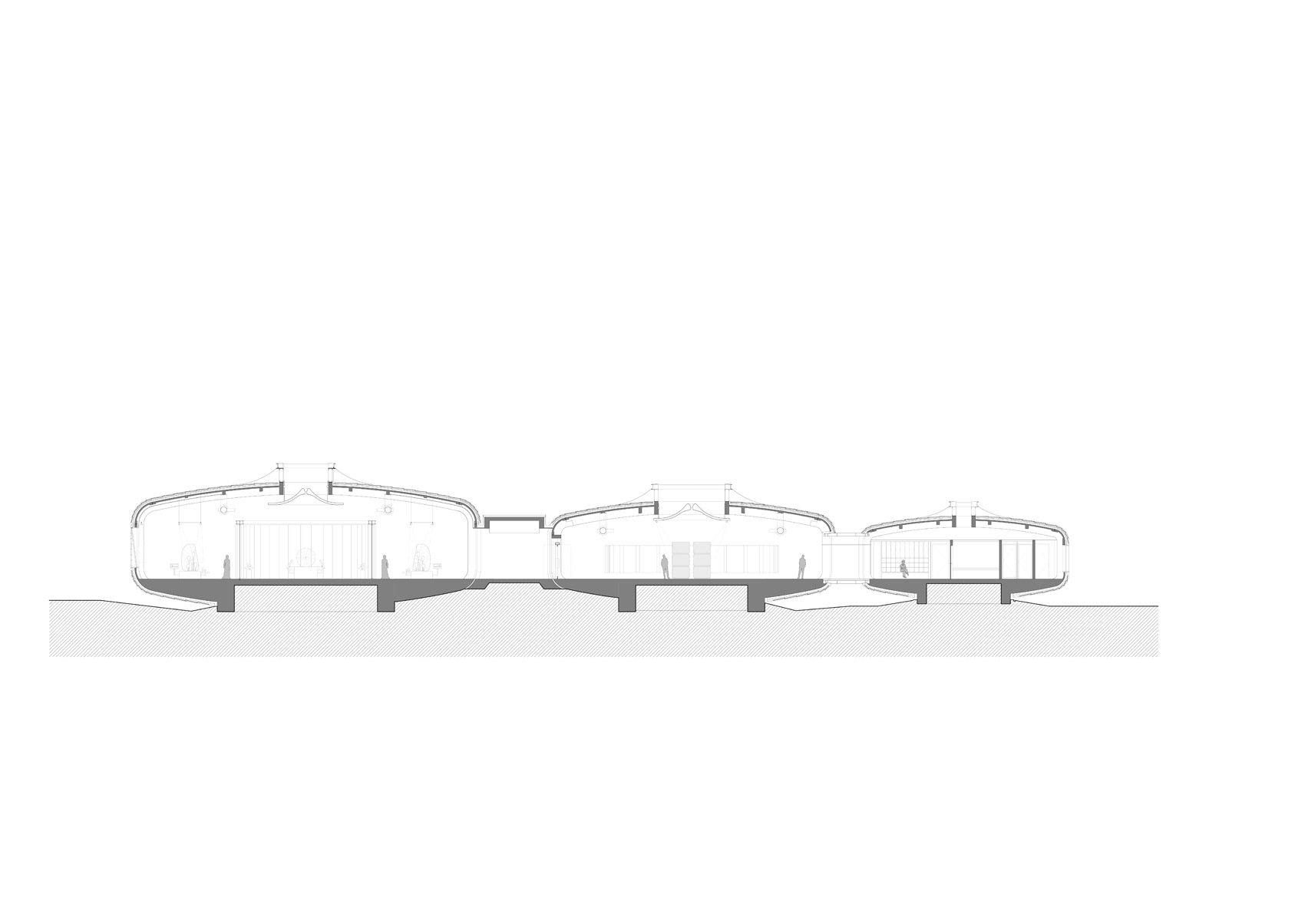 AE Interest: Made of 5 interconnect pods that very in size, pod design influenced by local fossils, includes an immersive theatre, a cafe, gift shop, and exhibition areas, the pods do not disrupt the geology or terrain below by using prefabricated concrete structures, A place for visitors and researchers to examine local fossils and rocks.