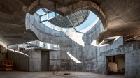AE Interests: Thin, undulating concrete roof with copper cladding. Raw, exposed concrete walls. Plaster and red brick façade.