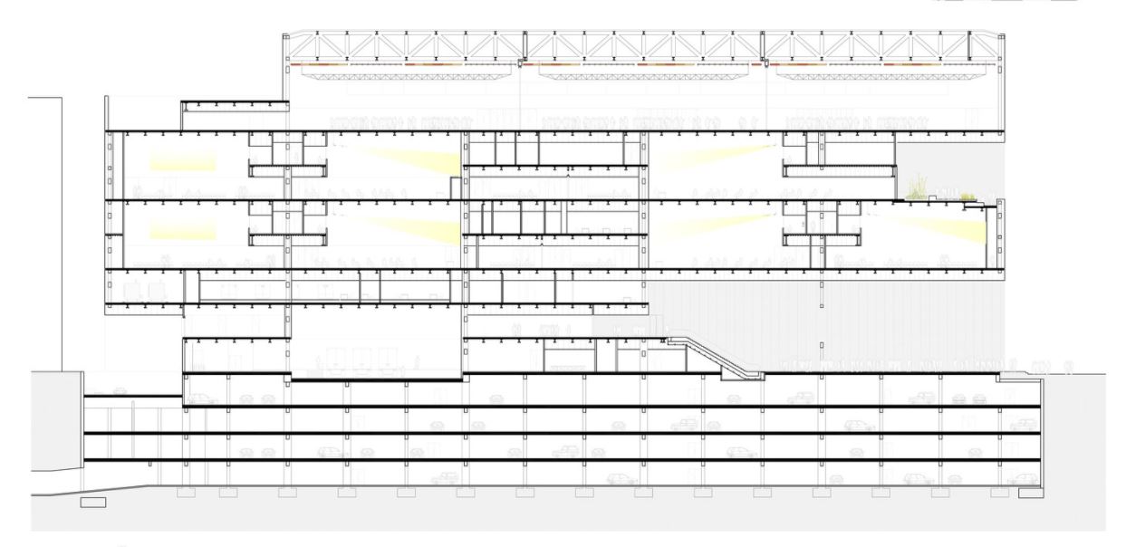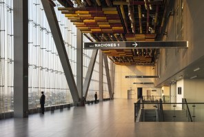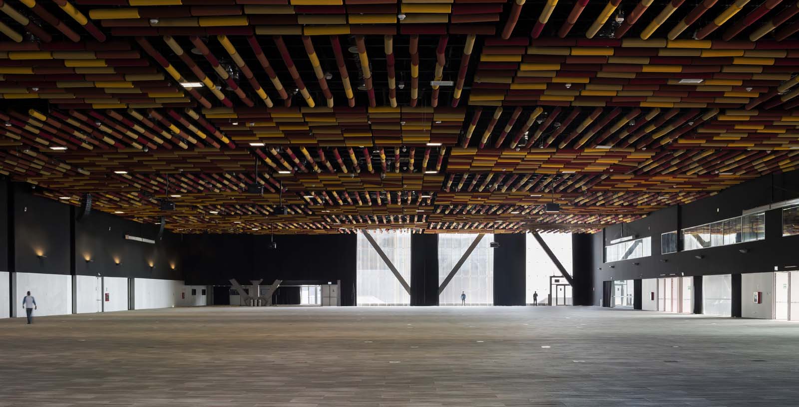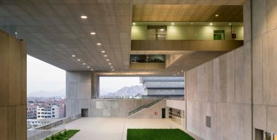 Screen mesh, sun shading, great spans, minimalist, earthquake resistant.