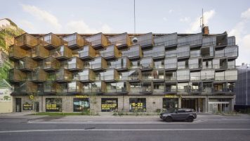 Renovation project, sustainable, façade engineering, sun shading, incorporated vegetation, prefabrication.