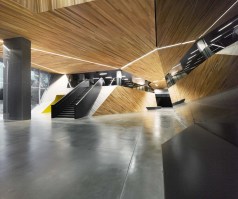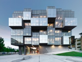 AE Interests: cantilever, glass facade, educational space, higher education, public health, atrium, wood interior, LEED Gold, rainwater collection