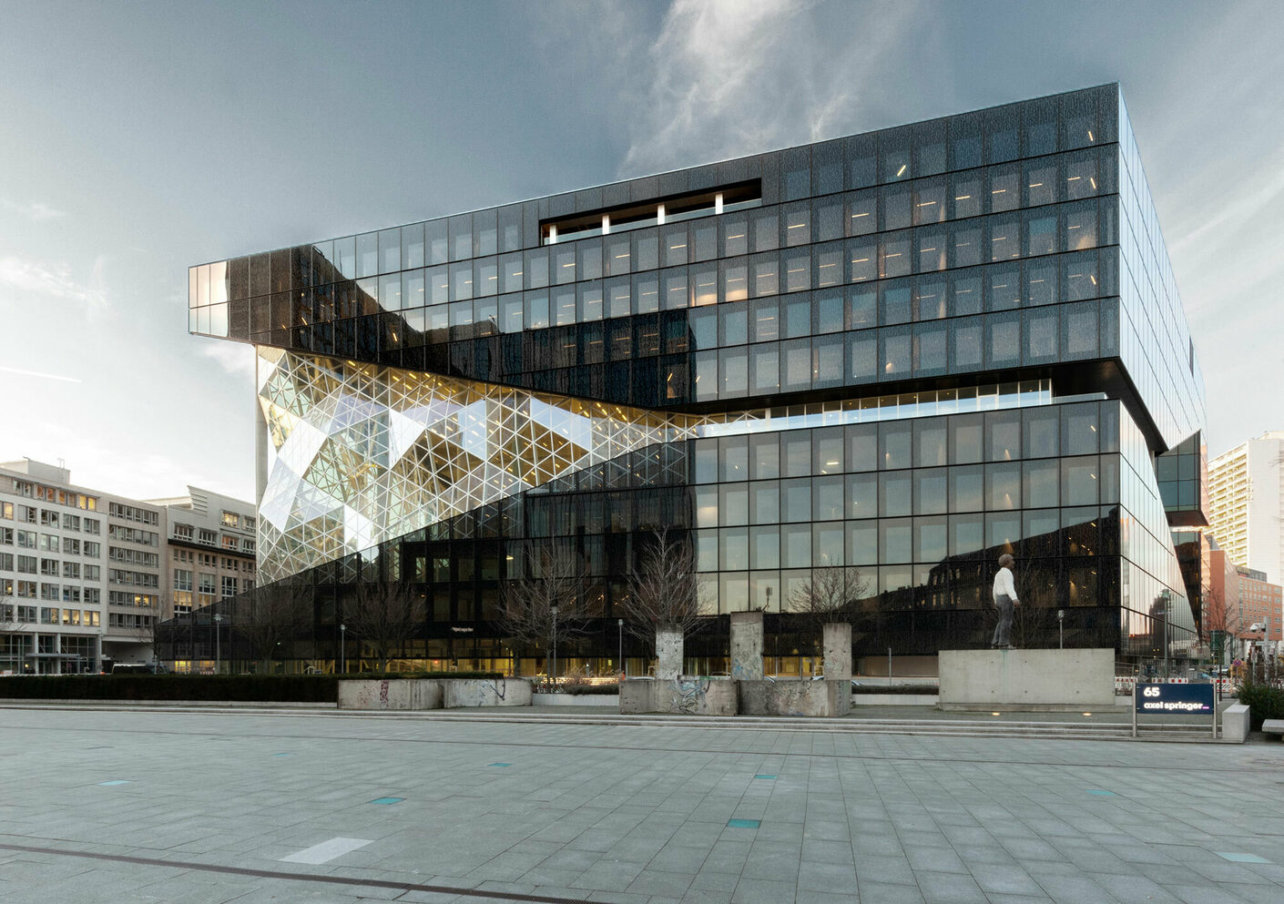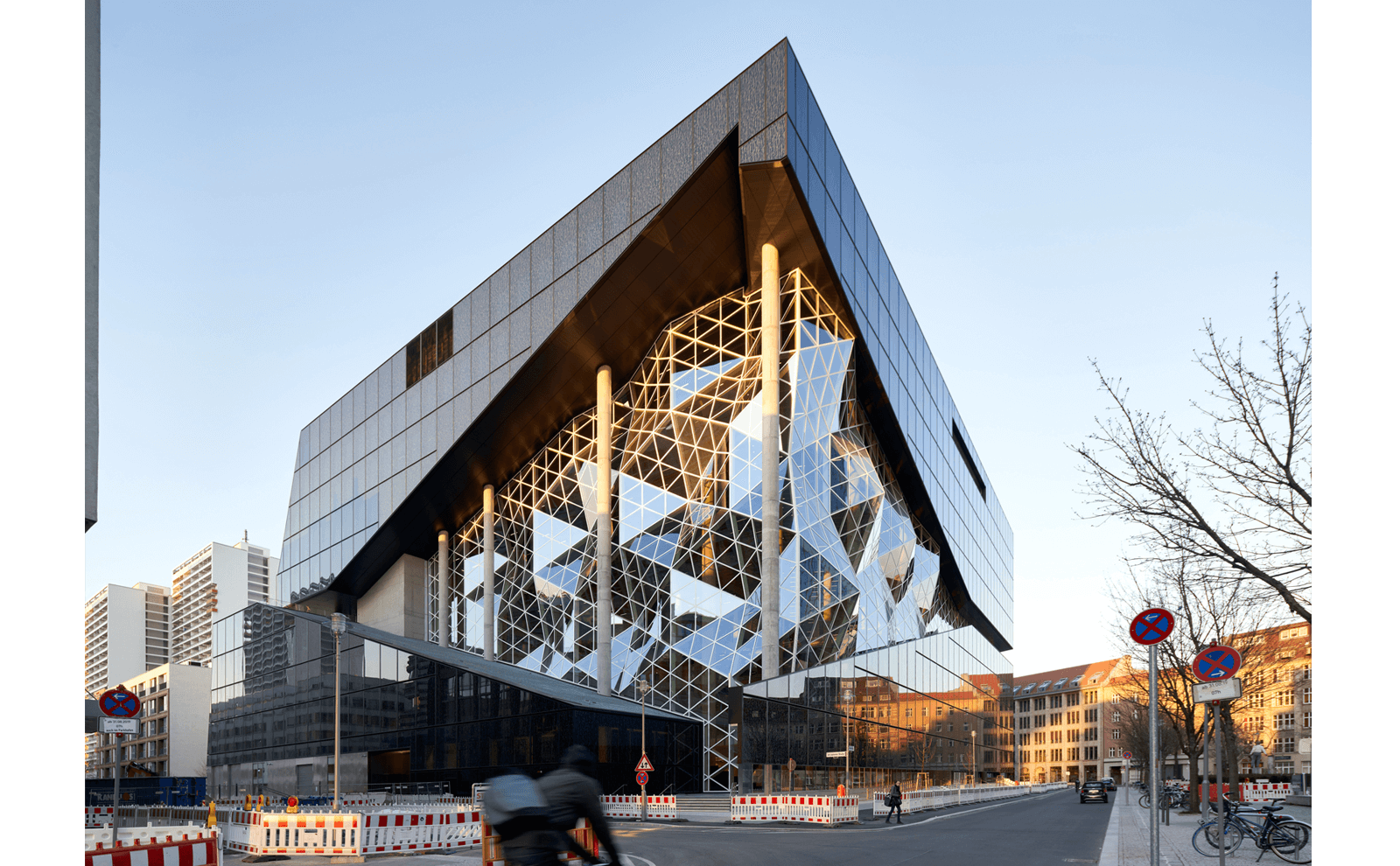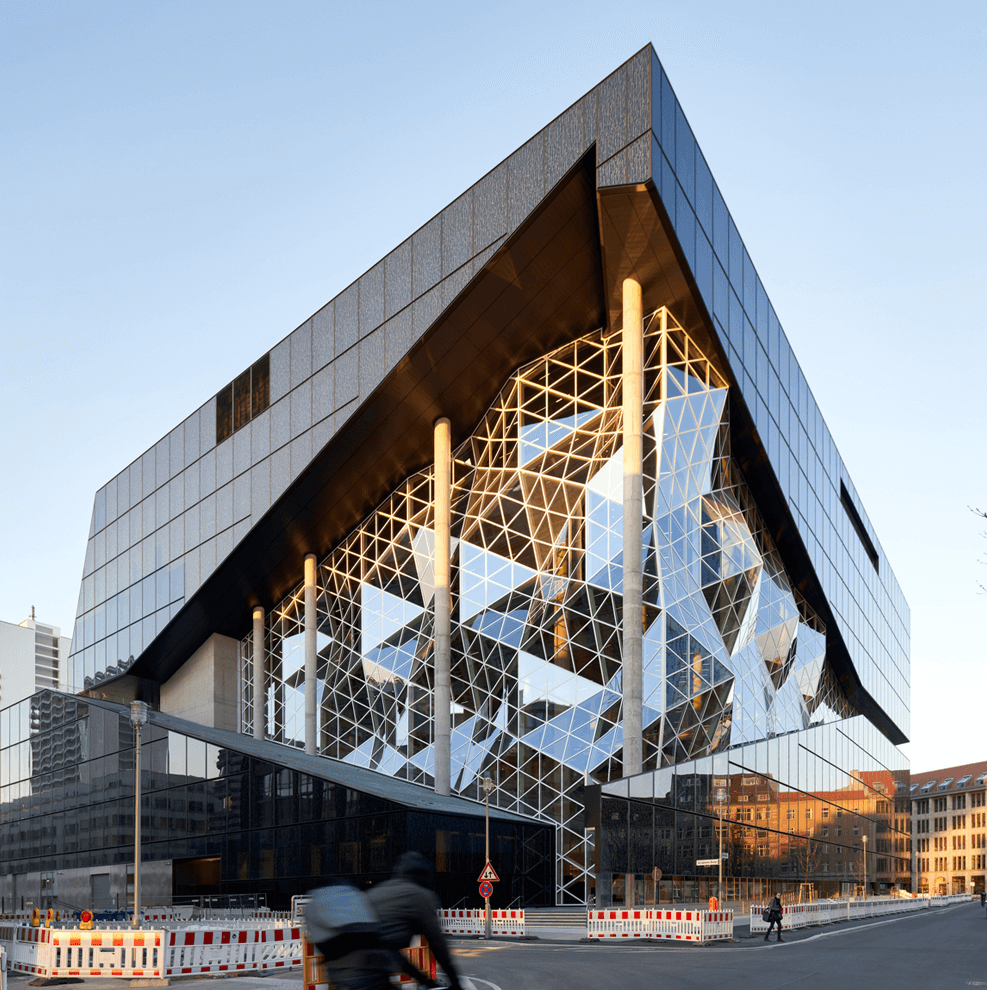 A/E Interest: Large Open Atrium, Post Covid, Collaborative Office Space, Faceted Glass Atrium, Contemporary Architecture, 45 Meter Complex Glass Facade, Natural Lighting, Multiple Bridges Connect the Different Floors in the Building, Terrace-like Interior Feature to Promote open