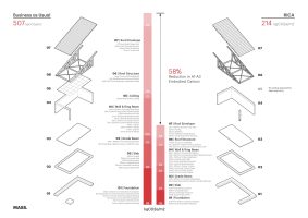 AE Interest: Carbon positive by 2044, Sustainability, Stone foundation, Timber framing, Compressed stabilized earth blocks, 1500kHW solar array supplies 100% of power, UN sustainable development goals, Solar principles, Minimizing use of concrete and steel.