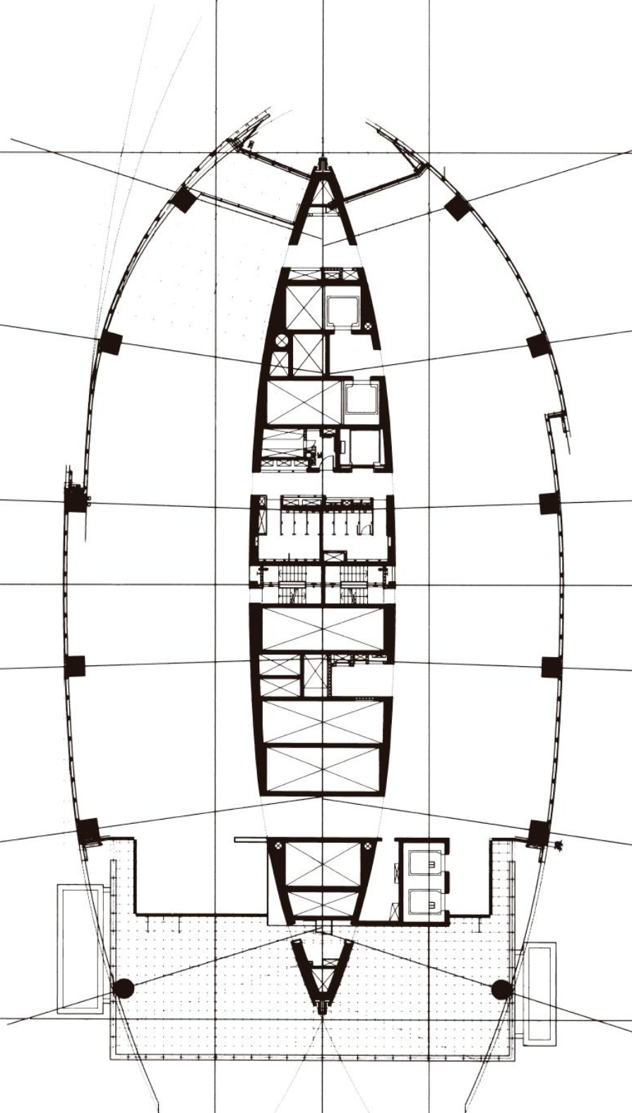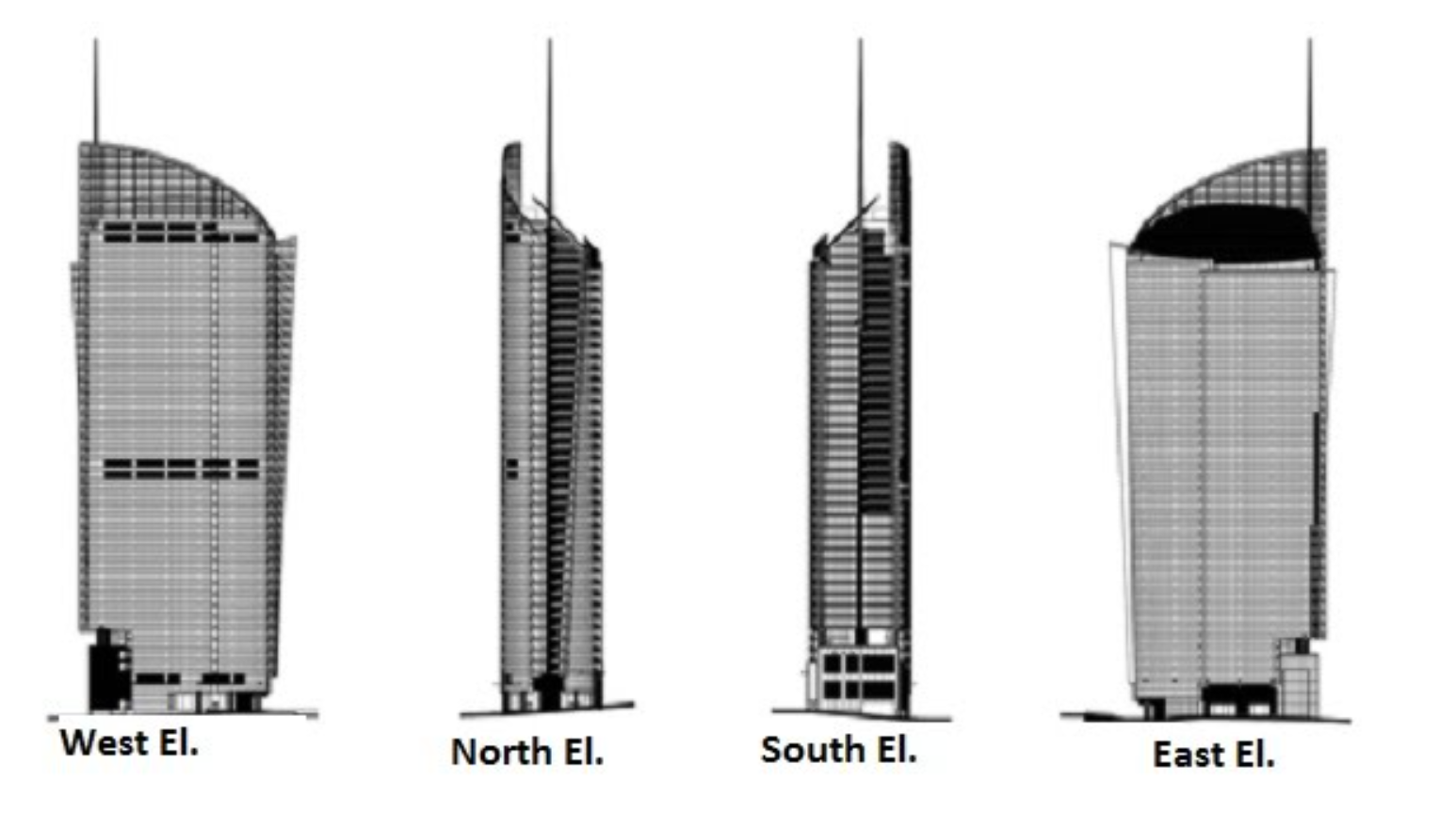 AE Interests: Unusual geometric shape, use of double-skin to regulate temperature, multi-use luxury building with large amounts of natural lighting