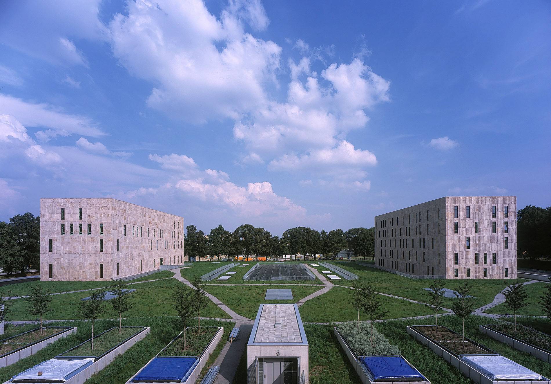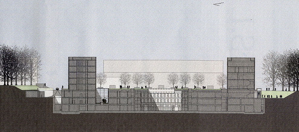 AE Interests: Central space is underground; sunlit atrium; symmetrical site layout; grooved façade reminiscent of bookshelves; blending traditional and contemporary styles; conversion of a football field into public greenspace; central space functioning as the “heart” of the building with hallways and footbridges serving as arteries; effect of architecture on visitor experience.