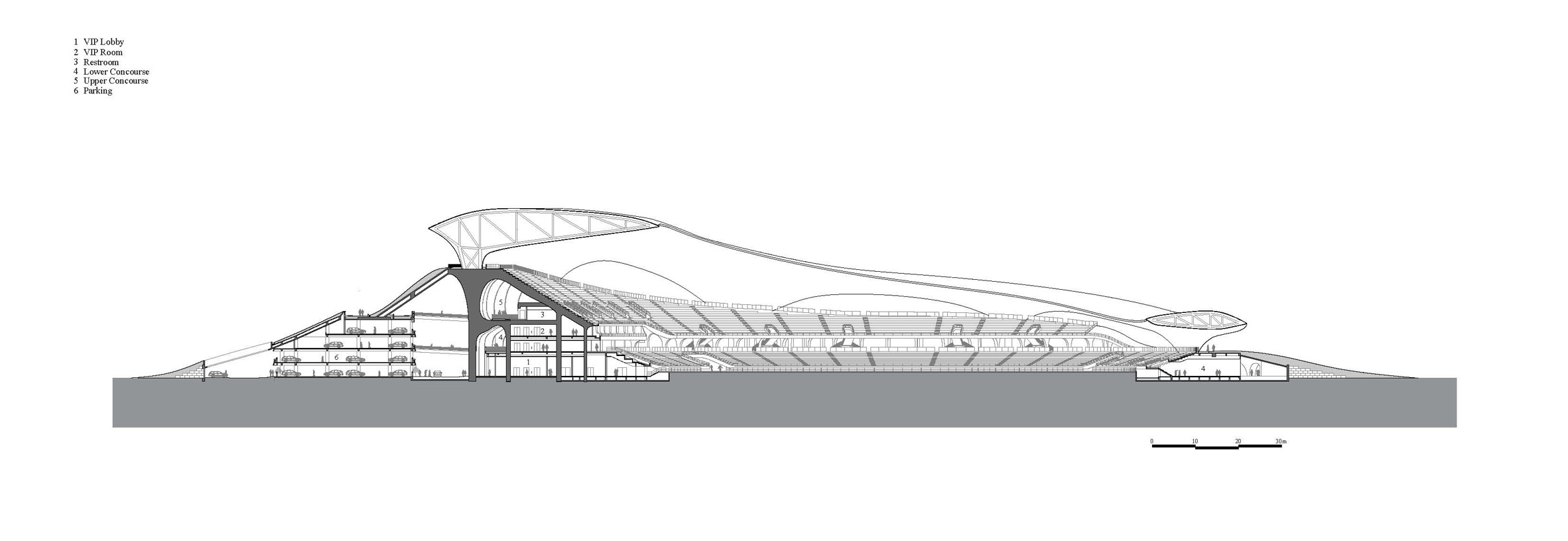 Size: 33,731 square meters with seating for 30,000 people