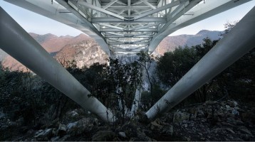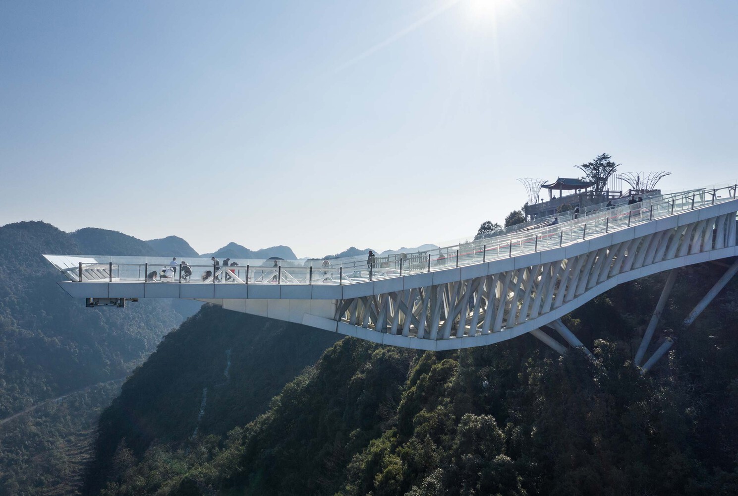 AE Interests: china, steel-frame, mountain building, glass structure, beam supported, restaurant, club, 34 meters cantilevers, intricate steel structures, truss structures, glass glazing