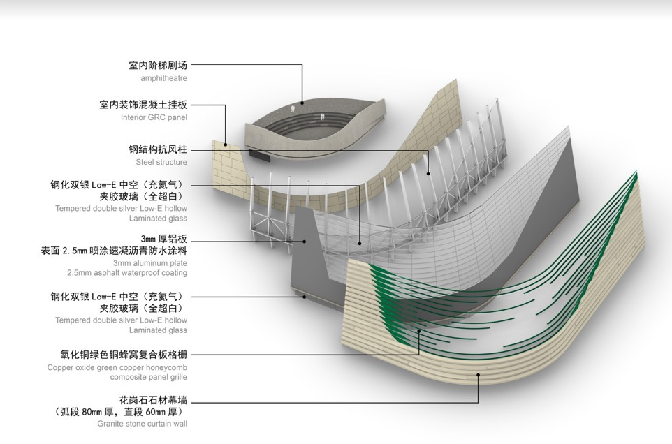AE Interests: Steel Structure, Granite Curtain Wall, Laminated Glass, Asymmetric Window Design, Earthquake Resistance,