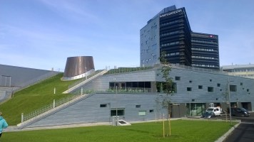 AE Interest: BREEAM certified and awarded (2021), sustainable development, first multi-user building in Finland, and sloping green roof with largest biodiversity in Finland that hosts insect hotels.