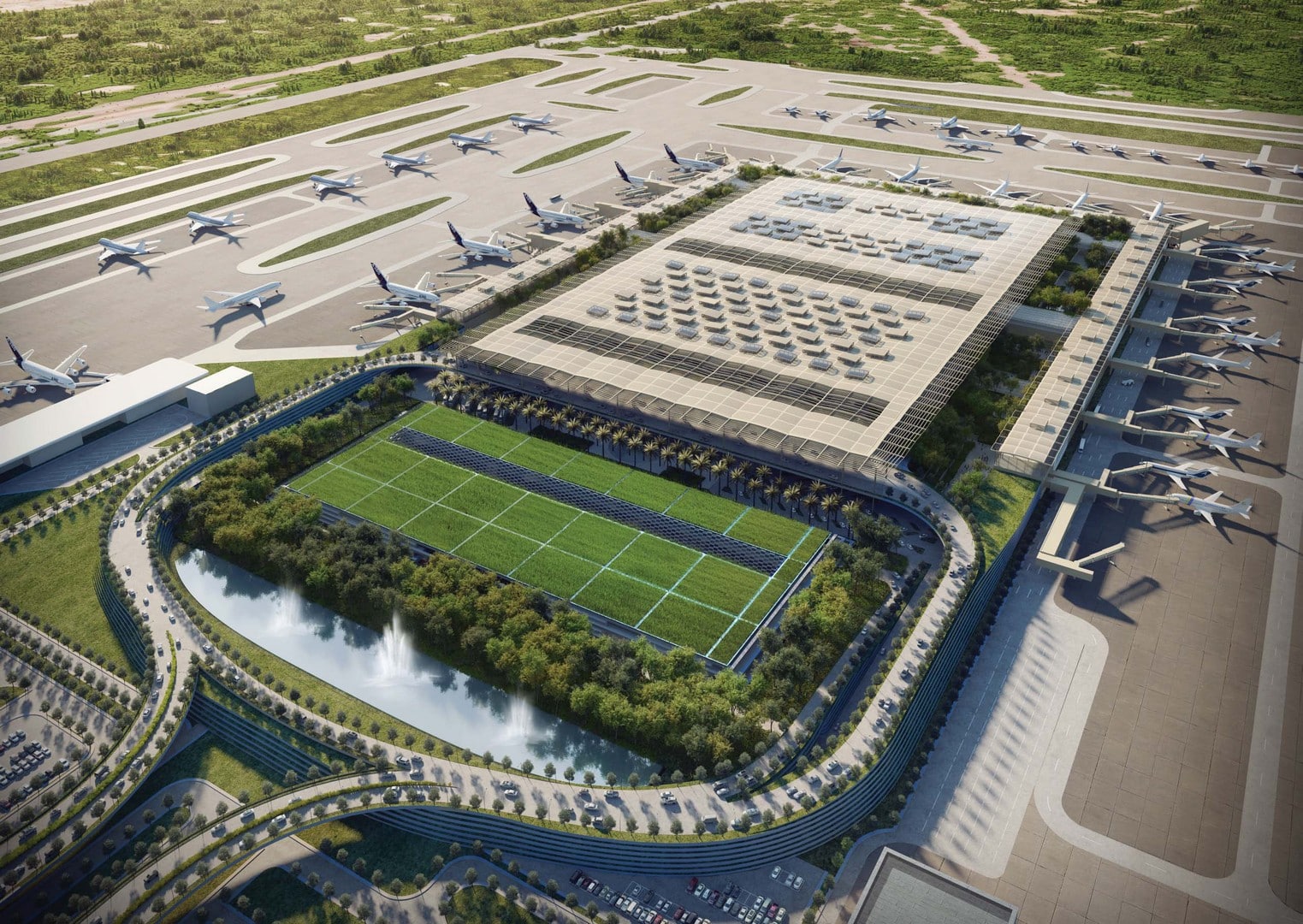 AE Interests: garden-themed terminal, use of bamboo and engineered timber for roofing and interiors, indoor landscaping with native plants and trees, natural light optimization, on-site water recycling systems
