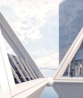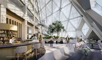 AE Interests: Mixed use. All glass enclosure. Technologically advanced glazing for thermal insulation and solar heat gain protection. 7 story sky atrium.