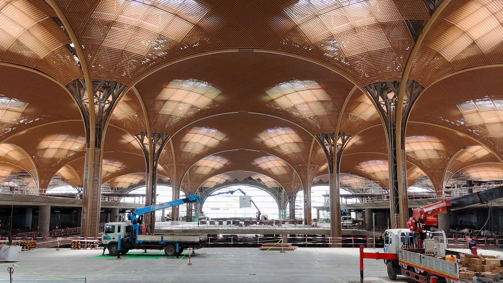 Main Structural Material(Exterior): Lightweight steel grid-shell roof with an outer daylight-filtering screen and glazed curtain wall.
