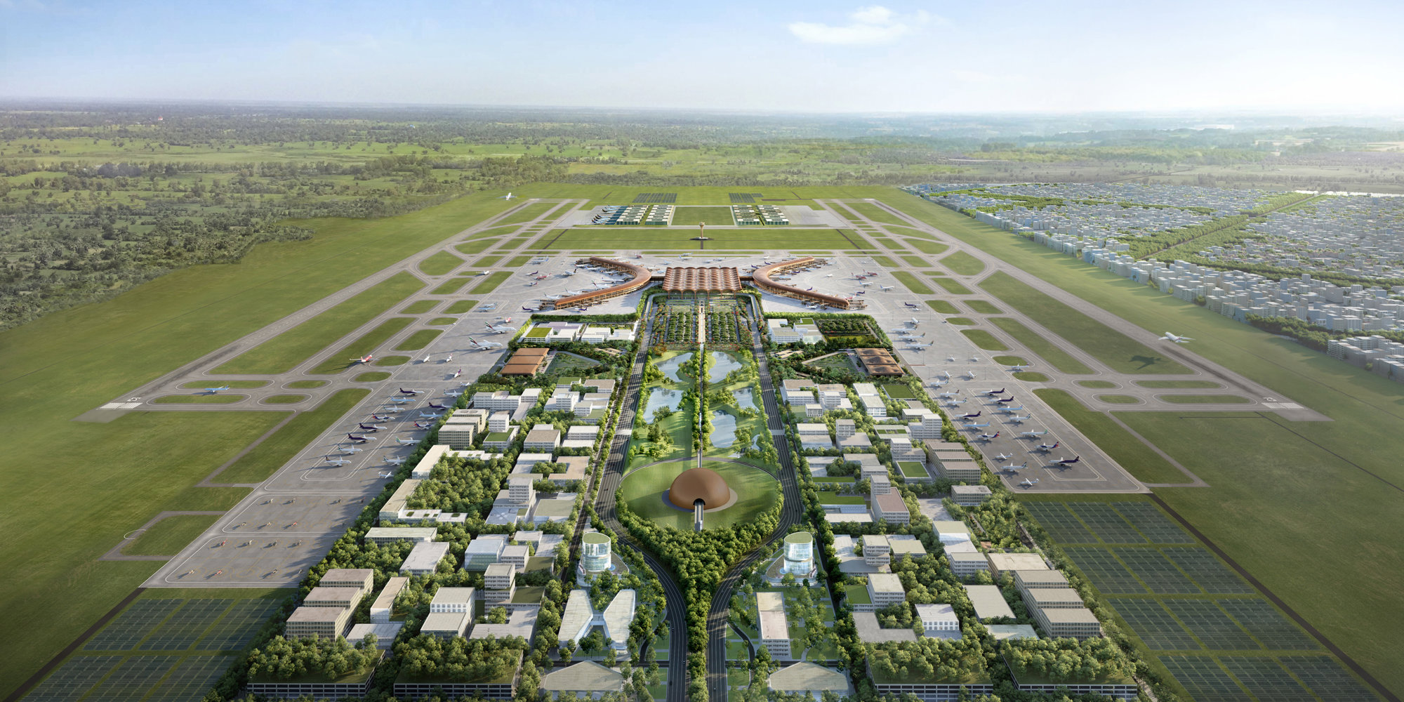 AE Interests: Single-roof steel grid-shell on 36 m structural-tree columns; Reinforced Concrete cores for lateral/vertical systems. Solar-shaded high-performance glazing with strong daylighting to reduce cooling/lighting loads. Modular/phaseable bays for buildability; direct load paths to cores/foundations; on-site PV targeting near-net energy.