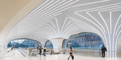AE Interests: Modular vault-inspired stations with parametric design, daylight-lit interiors and luminous “oyster” effect, strong branding across network/lines/stations, blending monolithic exterior forms with open social interiors as cultural landmarks.
