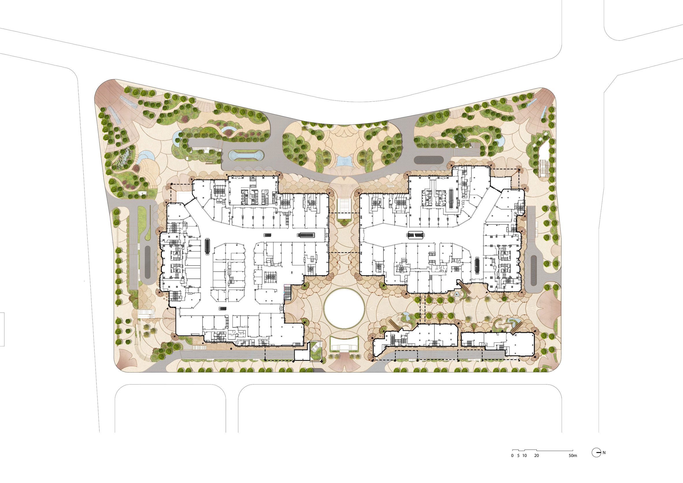 Size: 1668406 sqft podium, 828821 sqft landscape