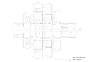 AE Interests: Reinforce concrete applied for durability and seismic resistance, the tall bell tower acts as a shear core resisting lateral loads; the topography required soil stabilization, bearing capacity, and retaining walls; cross-shaped plan allows cross ventilation; tiered drains and permeable paving use in gardens.