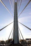 AE Interests: The mast, inclined at an angle of 58 degrees, supports the 200 meter span without the use of backstays; First cable-stayed bridge supported only in a inclined mast; International landmark known for its beauty and innovation