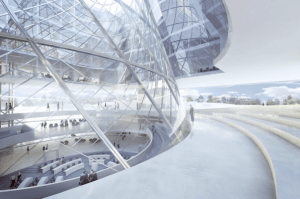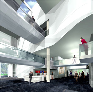 Atrium Concept, blue glass facade: James Carpenter Design Associates, Inc.