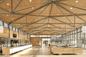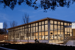 AE Interest: 3-story atrium with 5 bridges, limestone walls and large glass boxes