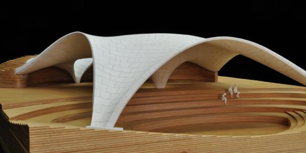 AE Interest: Curved concrete floors and roof (large compressive forces), round holes/courtyards in form. `