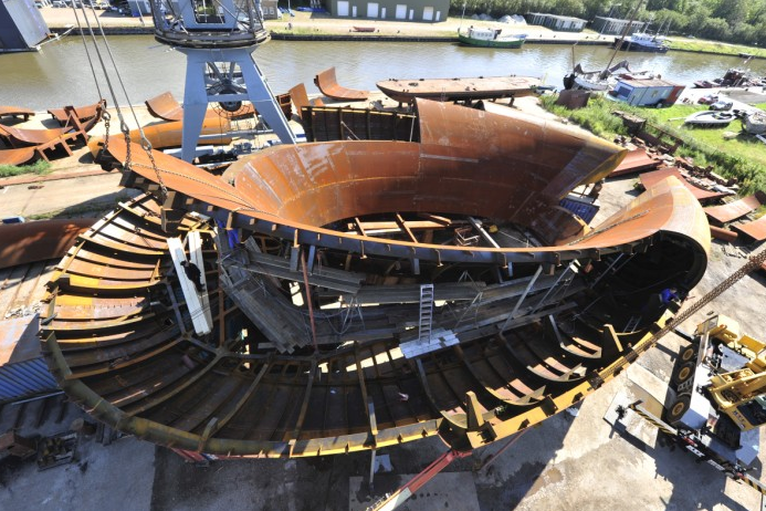 AE Interest: Energy-positive building (creates more energy than it consumes), 11 heat chimneys, natural ventilation, natural day-lighting, world’s largest solar panel array (1.4million sf), integrated wind turbines. Roof is built first to power construction of the building. $300million estimated cost.