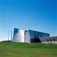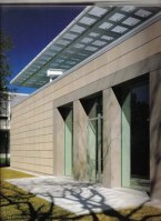 AE Interests: “Museum without a roof” – cast-aluminum shading panels, glass roof with tension-cable support at center-span, double-wall system for HVAC and rainwater, sculpture garden, barrel-vaulted ceiling. Exhibits originally included a sky-viewing space by James Turrell, which was eventually compromised by the construction of a high-rise nearby.