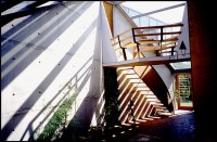 AE Interests: geometrical layout, natural light for lighting and climate, desire to connect internal spaces and the sky, louvered panels used to control sunlight