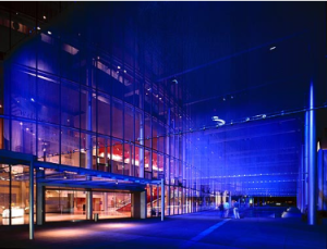 AE Interests: Acoustically tuned rehearsal hall, climate controlled rehearsal pit, lobby bounded by five story glass walls, three dimensional fields of metal are used as a medium to project lights and images in public areas.